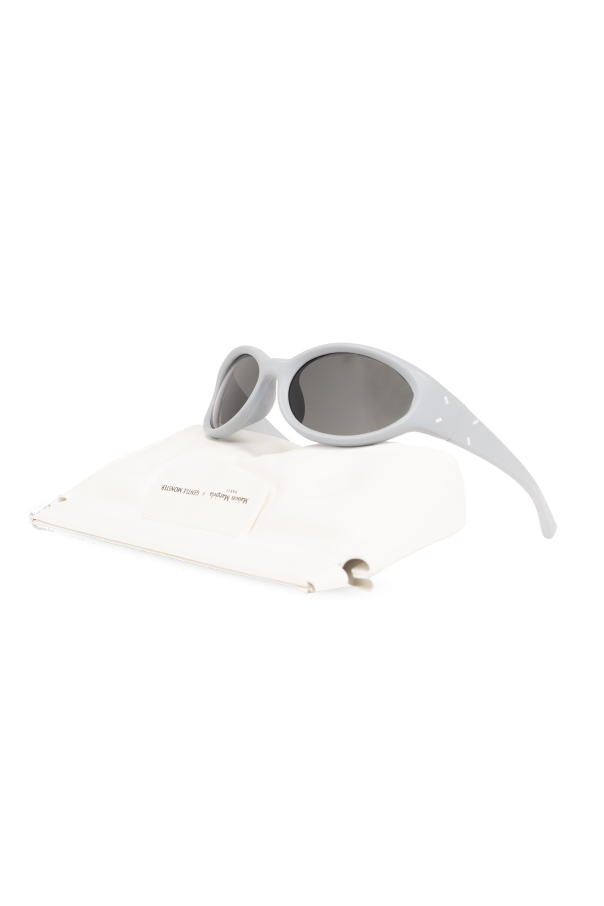 Introducing the pinnacle of collaborative innovation – the Maison Margiela x GENTLE MONSTER MM104 Leather sunglasses. Crafted for the discerning individual, these sunglasses merge the quintessence of vintage allure with contemporary finesse. The unique, oval shape of the lenses pays homage to retro styles, while the flat, matte-finish frame—fashioned from high-quality acetate and leather—exudes modern sophistication. The understated grey color palette ensures versatility, making these sunglasses a perfect complement to any ensemble. Attention to detail is evident in the designer's logo, subtly displayed as three white dots on the sleek, flat temples that also feature a gentle curve for an optimized fit. Additionally, the grey lenses offer 99.9% protection against UV radiation, ensuring not only style but also superior eye protection. Accompanied by a canvas case adorned with the collaboration's branding, these sunglasses are presented with an exclusive touch, making them an essential accessory for both protection and style. Why Purchase This Product? Exquisite collaboration between Maison Margiela and GENTLE MONSTER, offering unparalleled style. Unique design that blends retro and modern elements for a distinctive look. Made from premium acetate and leather for durability and comfort. Grey lenses featuring 99.9% UV protection, combining fashion with function. Includes a branded canvas case for elegant storage and protection.