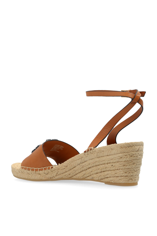Introducing the 'Ines' Wedge Sandals by Tory Burch, a testament to sophisticated summer style. These sandals feature a dominant brown hue, elegantly complemented by the designer's iconic pattern on the front strap, potentially serving as a subtle nod to Tory Burch's esteemed logo. The ankle is gracefully encircled by a strap with a buckle, offering both security and charm. The wedges are crafted from a material that mimics the appearance of woven textures, infusing the sandals with a natural, airy feel perfect for warm-weather escapades. The outer and inner layers are meticulously made from high-quality leather, with the addition of fabric in the inner layer for enhanced comfort. The soles are designed from durable rubber, ensuring longevity and ease of wear. Every detail, from the precision stitching to the finely finished straps, reflects the luxury and craftsmanship synonymous with Tory Burch's exclusive brand. Why Purchase the 'Ines' Wedge Sandals? Exceptional craftsmanship and quality materials, including premium leather and a rubber sole for durability. Features a distinctive designer pattern on the front strap, adding an element of exclusivity. The wedge design offers a perfect blend of elegance and comfort, ideal for both casual and formal summer occasions. Versatile styling possibilities, from daywear to evening attire, thanks to their sophisticated aesthetic.