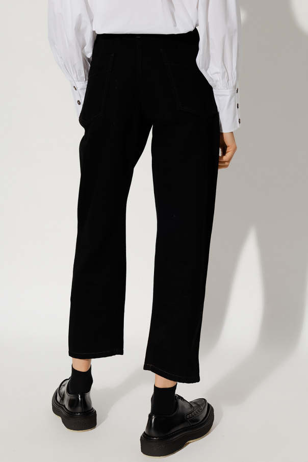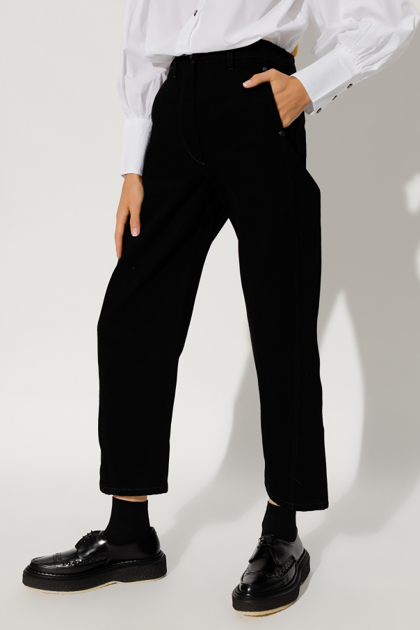 Black jeans from Lemaire. Fastened with a zip and button, this straight leg design features two front pockets, two back pockets and cropped length.