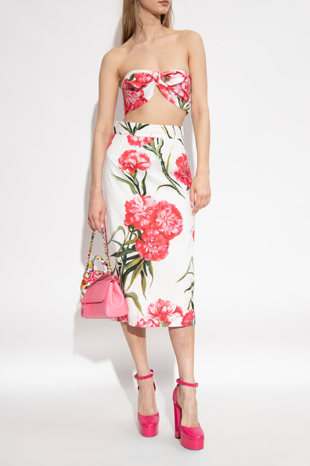 Dark pink ‘Sharon’ platform pumps from Dolce & Gabbana. Crafted from patent leather, this model sits on a cream leather sole and features an adjustable ankle strap with a branded buckle and a round toe.