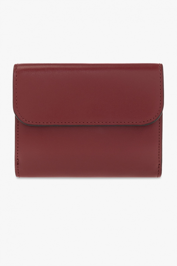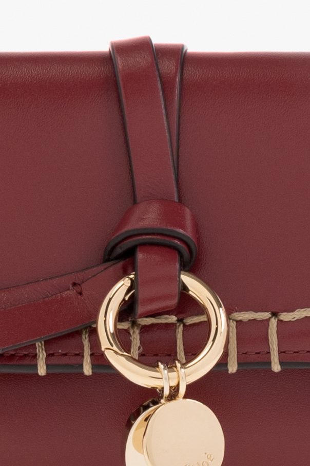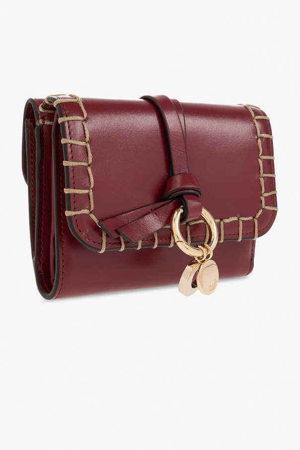 Maroon ‘Alphabet’ wallet from Chloe. Crafted from leather, this design secures with snaps and features a flap with top-stitched edges and a leather link with light gold-tone metal charms. It is complete with a back coin pocket and a bill compartment, one slip pocket and six card slots inside.
