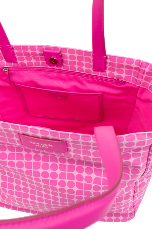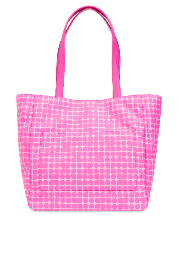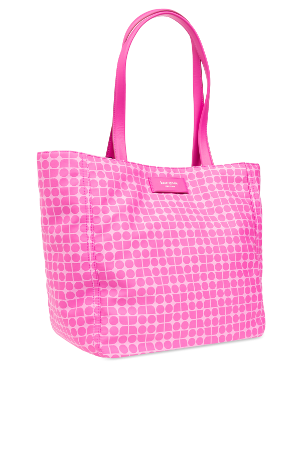 Introducing the Noel Shopper Bag by Kate Spade, a dazzling addition to any ensemble that flawlessly marries functionality with avant-garde design. Adorned in an eye-catching pink hue, this bag stands as a testament to the wearer's bold sense of style. The exterior showcases a unique pattern of circles set against a lighter pink background, creating an intriguing mosaic effect that captivates and charms. Crafted with a smooth, possibly synthetic material, the Noel Shopper Bag promises durability and a touch of sophistication. Its construction features long, slender handles for effortless shoulder wear without compromising the bag's sleek silhouette. A discreet rectangular logo plaque, seamlessly integrated into the design, adds a layer of exclusivity and acknowledges the designer's meticulous attention to detail. The interior of the bag is as practical as it is spacious. It includes a secure compartment that closes with a magnetic snap, an additional zippered pocket for valuables, and three slip pockets for organized storage. This internal layout ensures that essentials are kept safe and accessible, making the Noel Shopper an ideal companion for the modern woman on the go. Why Purchase This Product? Vibrant pink color and unique circle pattern for standout style. High-quality materials ensure durability and elegance. Designed by the renowned Kate Spade, adding a touch of luxury. Functional interior with multiple pockets for optimal organization. Exclusivity is guaranteed with the designer's discreetly placed logo.
