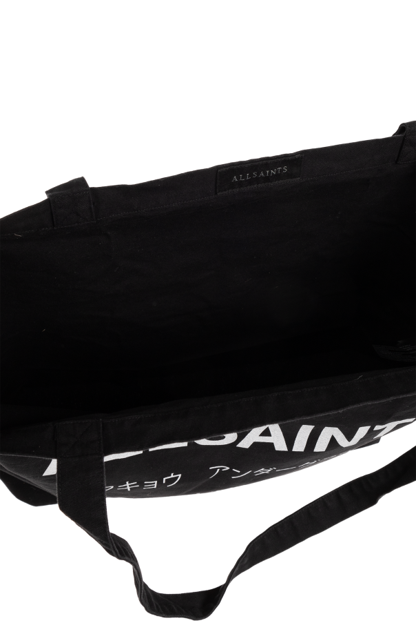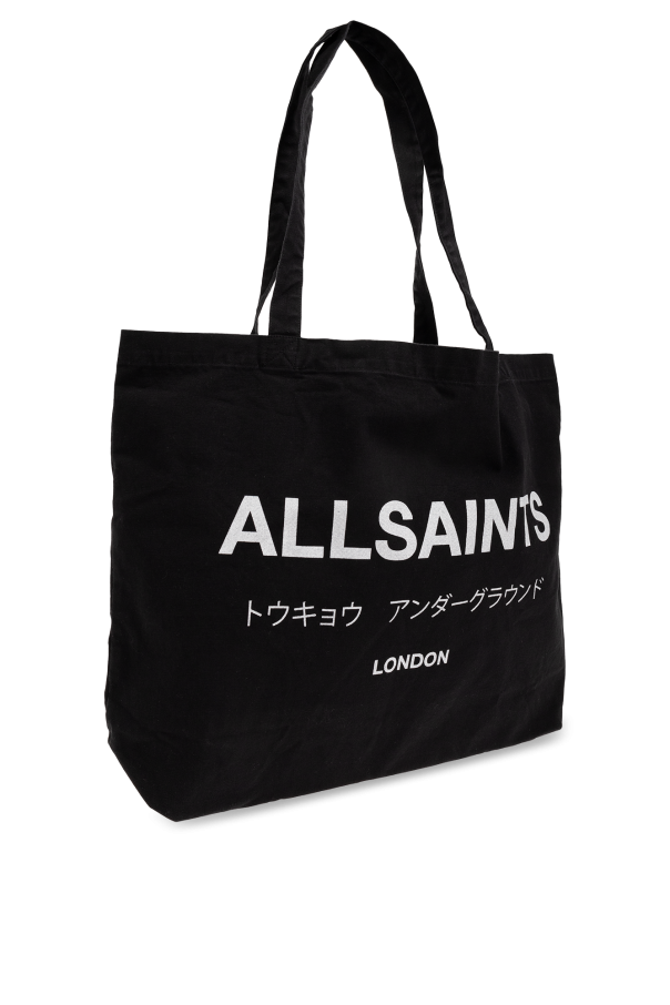 Black ‘Underground’ shopper bag from AllSaints. Made of cotton, this design showcases a printed white logo, two half-round straps and one internal compartment.