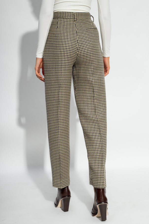 Cream and black pleat-front trousers from Forte Forte. Crafted partially from wool, this pair features a button, hook and zip closure, houndstooth pattern, two front pockets, one back pocket and loose-fitting, straight legs.