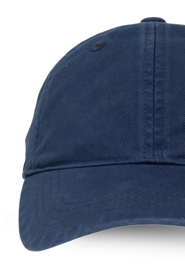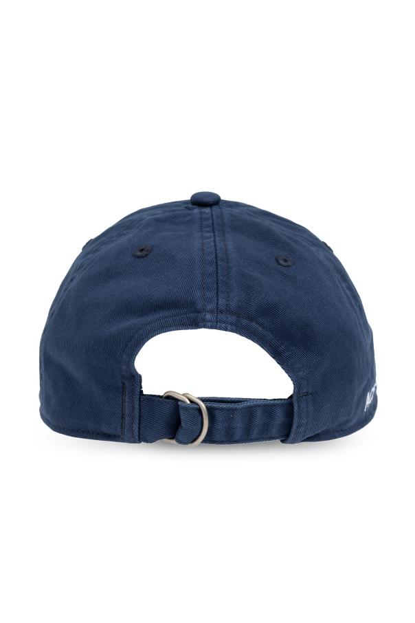 Introducing the exclusive Baseball Cap from the esteemed designer Acne Studios. This cap epitomizes the philosophy of the brand, which blends practical minimalism with boundary-pushing creativity. Crafted from pristine 100% cotton, the cap boasts a classic baseball shape with a rounded brim, offering a timeless silhouette. Its deep navy hue exudes sophistication without the need for additional patterns or logos, maintaining a sleek, understated elegance. Designed for ultimate comfort, the cap features six meticulously stitched panels and strategically placed ventilation eyelets. The adjustable back closure, adorned with a metal buckle, ensures a perfect fit for any head size. Why Choose This Product? Timeless Design: Classic baseball cap shape with a modern twist. Premium Material: Made from high-quality 100% cotton for durability and comfort. Versatile: A perfect accessory for both casual and refined looks. Comfort Features: Six-panel construction and ventilation eyelets for enhanced comfort. Adjustable Fit: Metal buckle closure for a customizable fit.