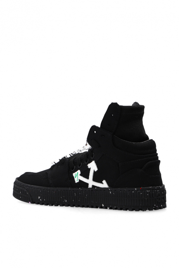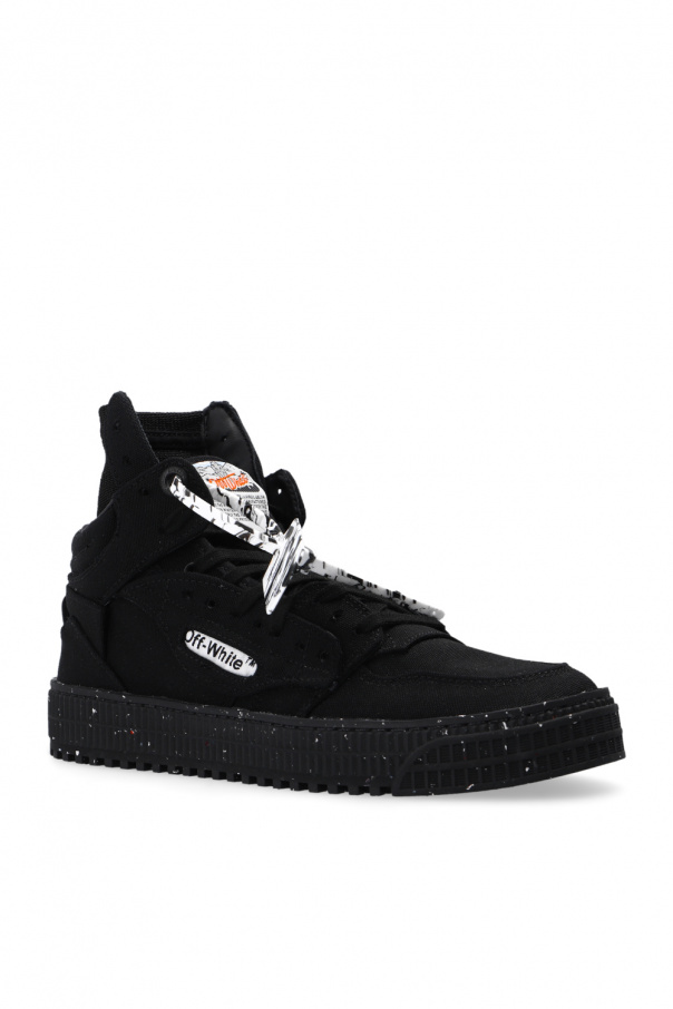 Black ‘3.0 Off Court’ high-top sneakers from Off-White. Resting on a black rubber sole, this lace-up pair features a tongue patch with a logo and the label’s signature black and white zip tie.