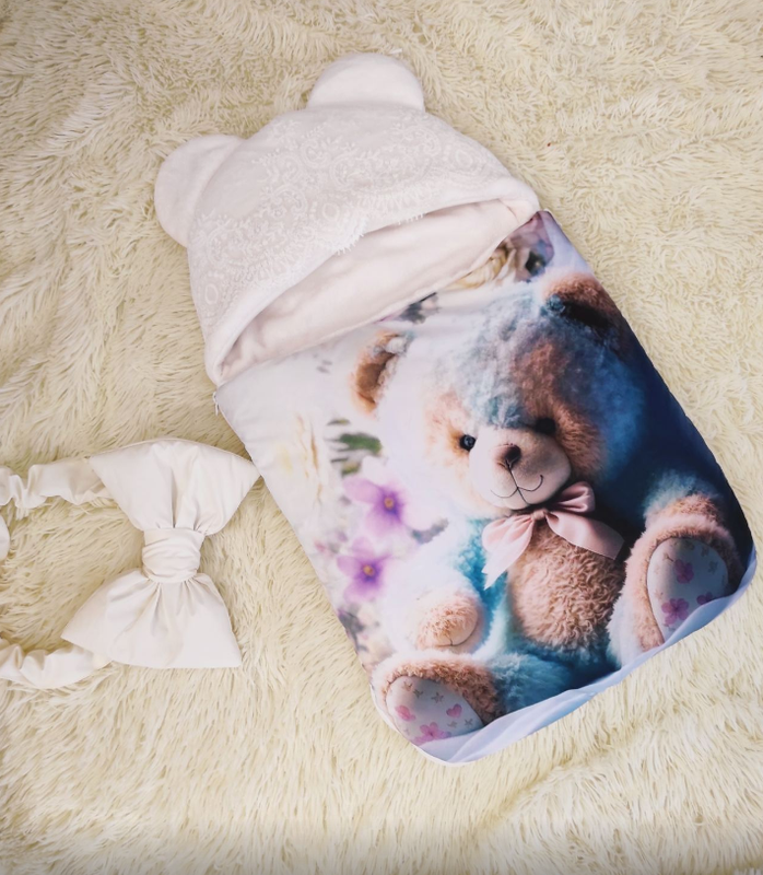 Конверт спальник на выписку и прогулки в коляске пошит из плащевой влагонепроницаемой ткани снаружи с красивым принтом