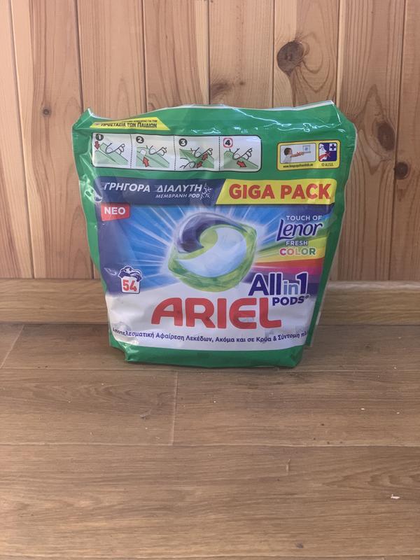 Ariel All in 1 гель-капсулы для стирки цветных вещей с ароматом Lenor - это идеальное решение для ухода и сохранения яркости вашей одежды. Специальная формула средства позволяет сохранить яркость цветов и избежать их выгорания во время стирки. Мощный стиральный гель легко удаляет даже самые сложные пятна и загрязнения с вашей одежды. Капсулы обеспечивают точную дозировку, поэтому каждая стирка будет легкой и безопасной. Ariel All in 1 гель-капсулы для стирки цветных вещей Lenor 54 шт. - ваш надежный помощник для бережной стирки и безупречной чистоты и свежести. Способ использования: Просто положите одну капсулу в барабан вашей стиральной машины вместе с вещами и начните выбранный цикл стирки.