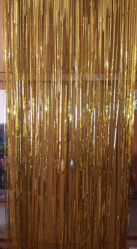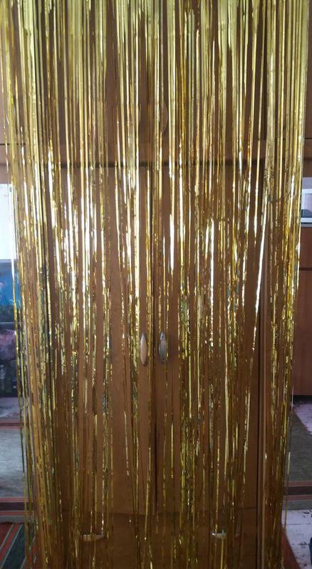 Шторка для фото зоны золотая длиной 2,45 метра. Толщина как порезанный лист.