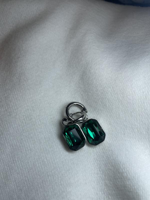 Смарагдові сережки у срібній окантовці (останнє фото для розуміння розміру сережок)