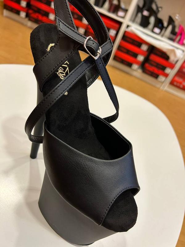 Матові стріпи (категорія - Трійки, каблук-20см.) з маленьким вирізом для пальців(нога не вилазить вперед). Додатковий ремінець, що фіксує голіностоп.