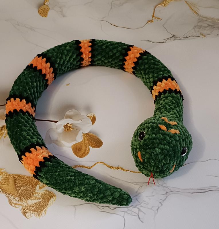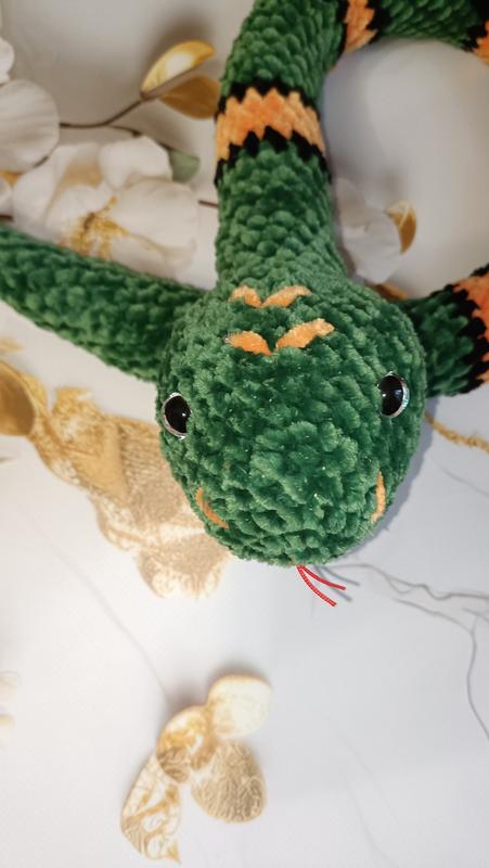 Змея вязаная из детской плюшевой пряжи, Himalaya dolphin baby, состав 100% полиэстер.