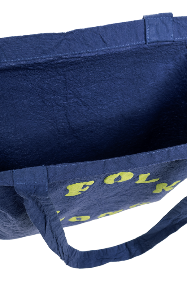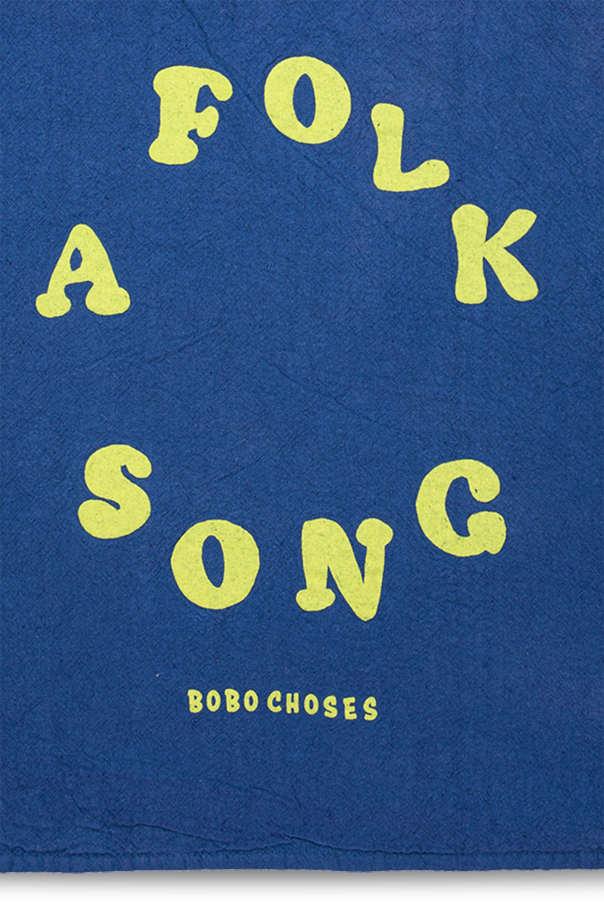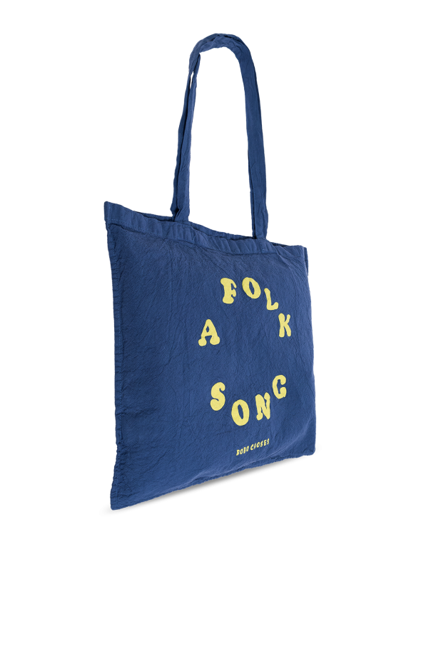 Dark blue shopper bag from Bobo Choses. Made of cotton, this design features printed lettering and a logo in green, two handles and one internal compartment.