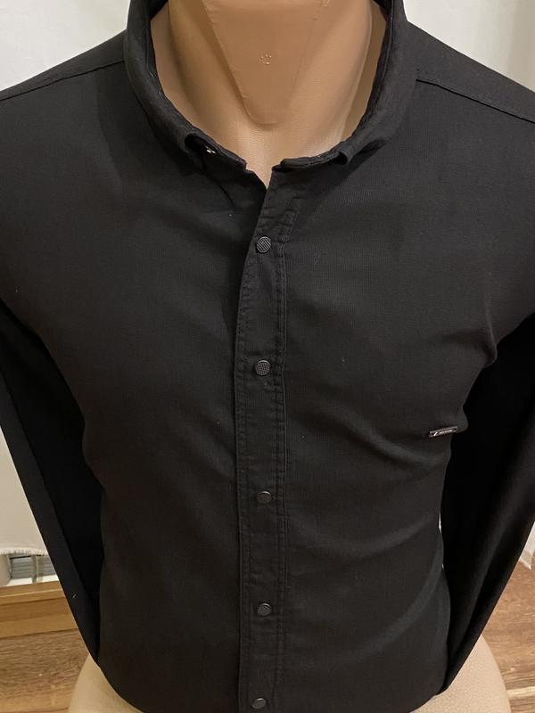 Рубашка имеет воротник с пуговицами и полностью застегивается на кнопке. Ткань структурная, вареный стрейч-коттон, отлично ложится по фигуре, приятная к телу, легкая в уходе, хорошо носится и обладает высокой эластичностью, имеет повышенную прочность и отличную посадку.Замеры