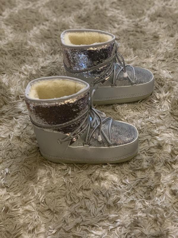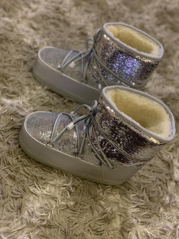 Продам женские теплые зимние угги луноходы серебристого цвета , на платформе . Очень теплые , натуральная шерсть , качественные и мягкие . Размеры 35,36,37. Цена 1100 грн, быстрая отправка , возможен наложенный платеж с примеркой и предоплатой