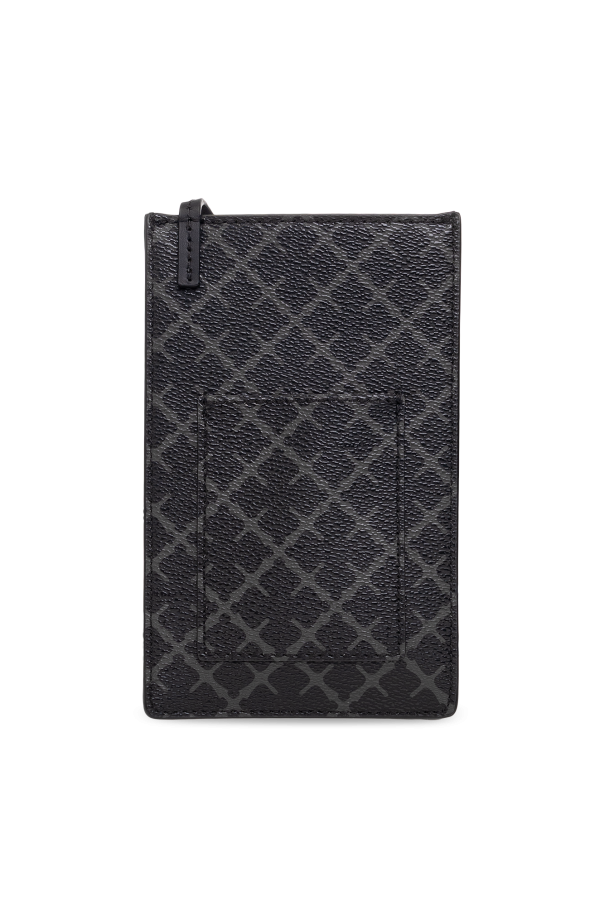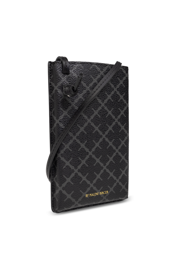 Black and grey ‘Ivy’ phone pouch with a strap from By Malene Birger. Decorated with the ‘Signature Flower’ pattern, this item features a gold-tone logo print on the front, a card slot at the back and one internal compartment.