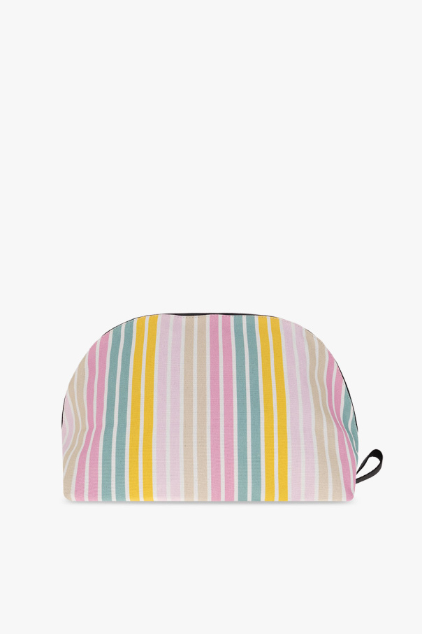 Multicolored wash bag from Ganni. Made of cotton, this design features a zip fastening, stripe pattern, logo patch and one internal compartment with one zip pocket.