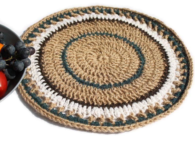 На фото мини коврик из джута / Сервировочная салфетка из джутаФорма: круглая