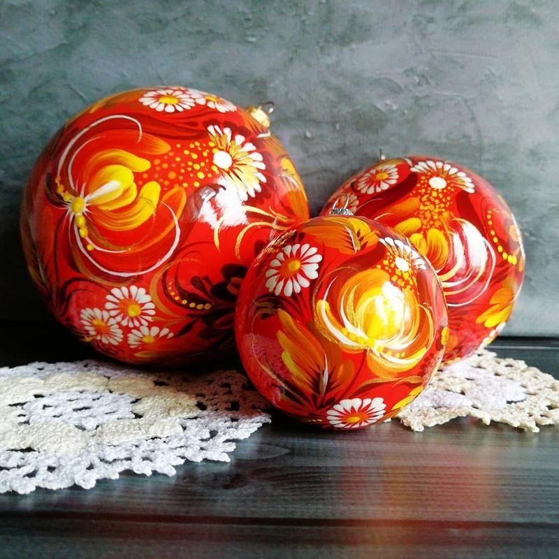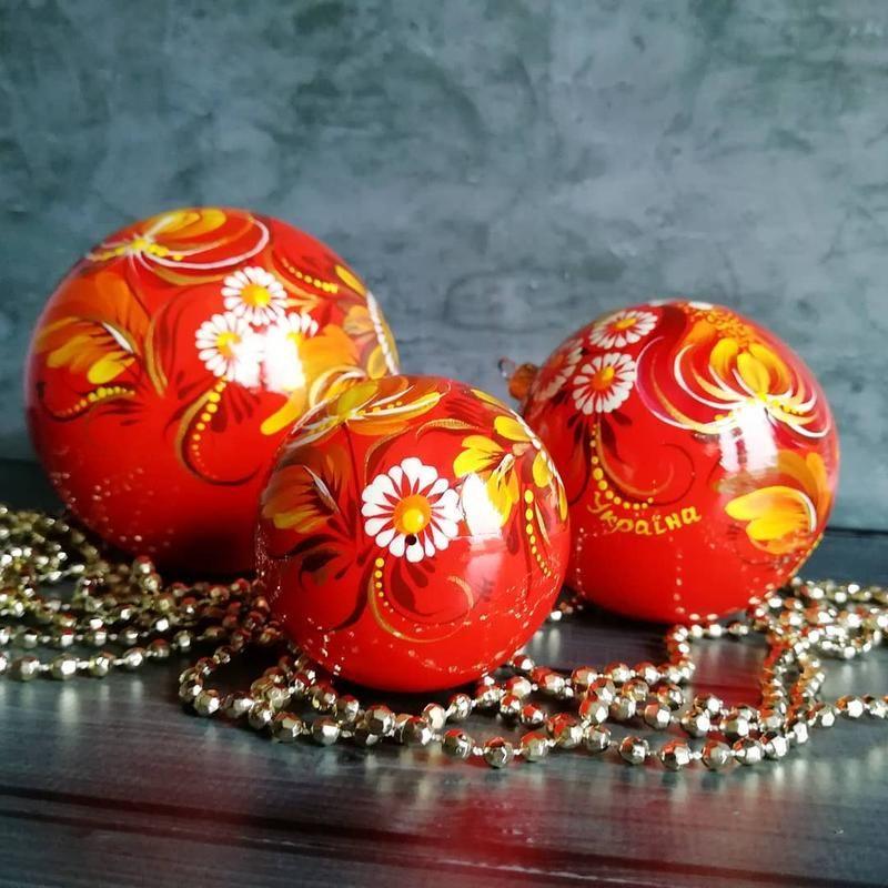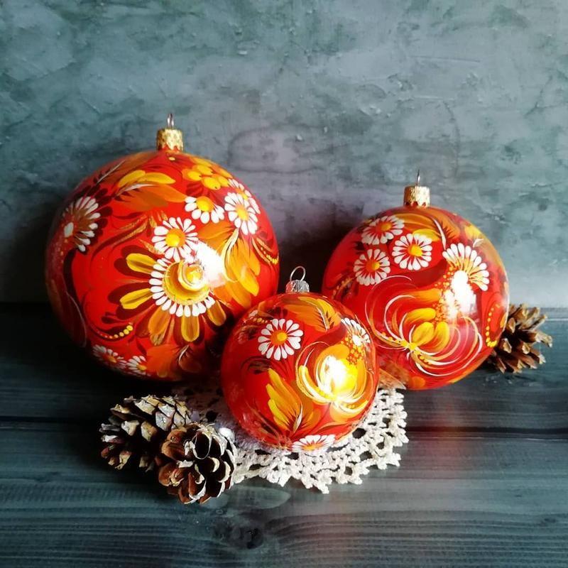 12 см - 350 грн/шт;Каждый продукт уникален, поэтому при повторении росписи шары могут иметь небольшие изменения в орнаменте.