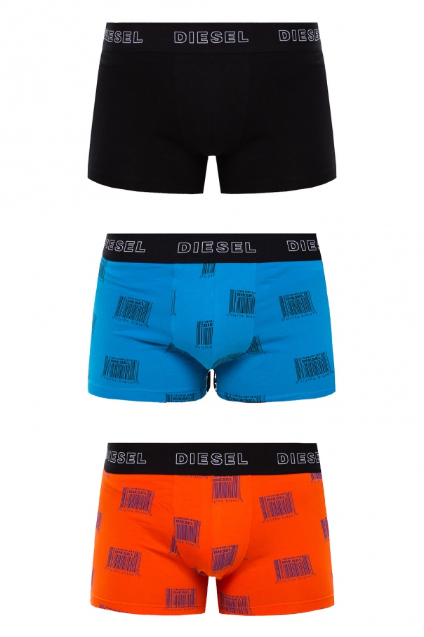 Black, orange and blue boxers three-pack from Diesel. Crafted from cotton, they are finished with a logo-embroidered waistband.