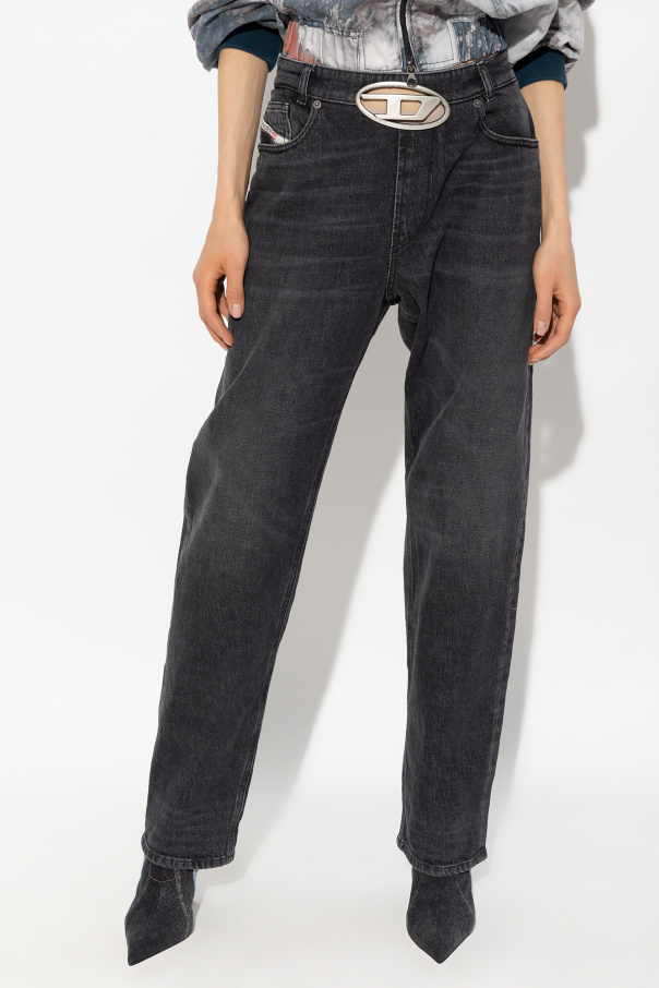 Dark grey ‘D-ARK’ loose-fitting jeans from Diesel. Fastened with a side zip and button, this pair features a metal D detail in silver-tone, multicolored logo patches, five slip pockets and loose-fitting straight legs.