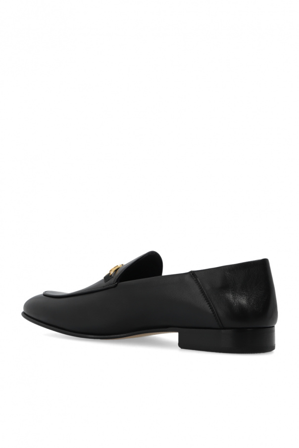 Black moccasins from Salvatore Ferragamo. Made of lamb leather, this model sits on a beige and black sole in leather and rubber and showcases the brand's signature Gancini buckle on the front.