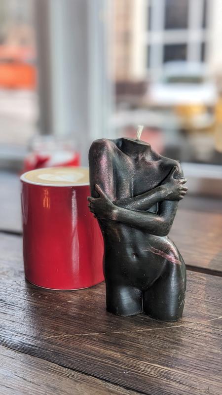 Оригинальный набор из двух свечей в виде мужского прутня и хрупкого женского торса. Высота свечей 16 и 15 см. Элегантный и необычный вариант подарок.