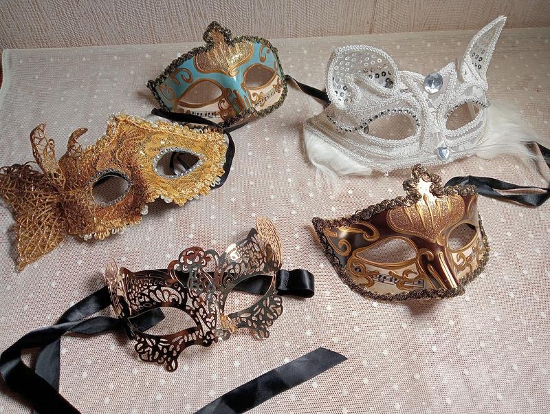 Маски маскарадные, театральные, карнавальные. Завязываются лентами.