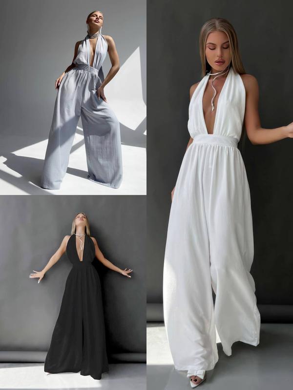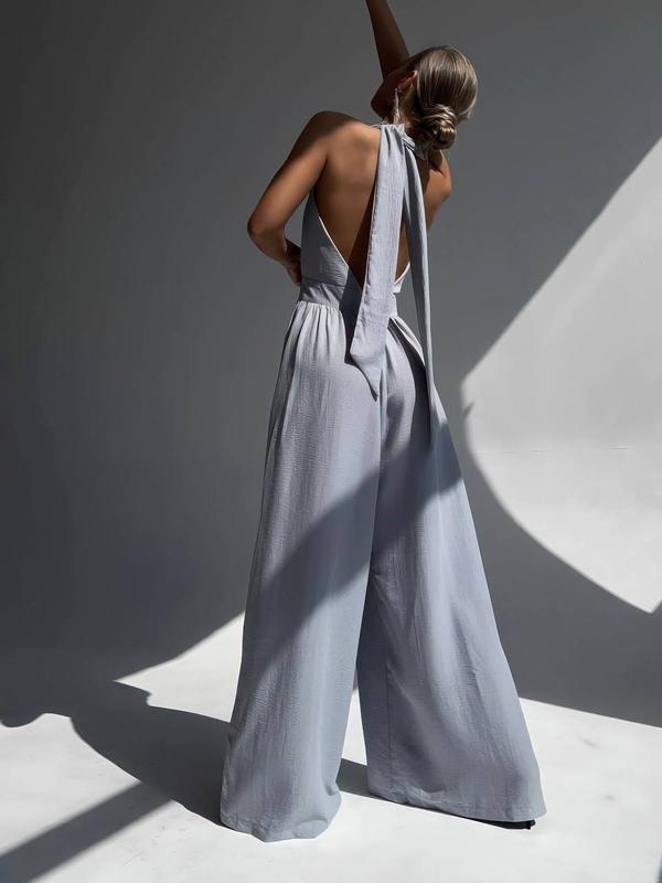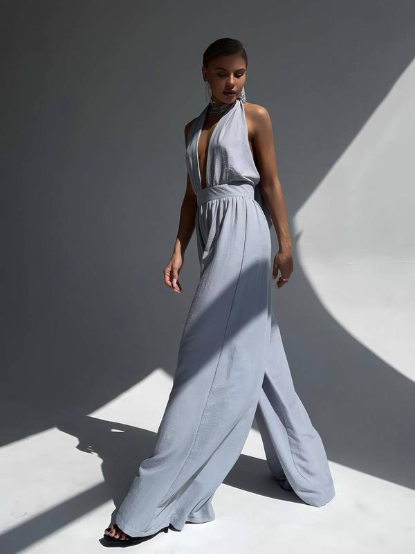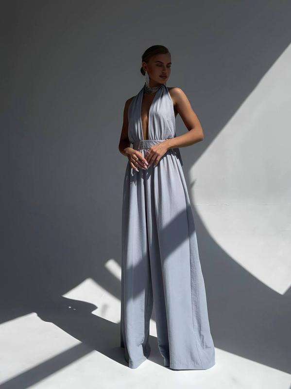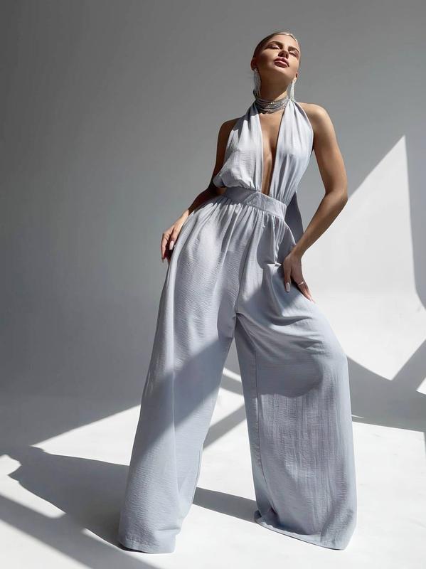 Элегантный комбинезон создан специально для самых ярких девушек. Ткань легкая, дышащая, приятная к телу, сзади на молнии. Идеальный крой выгодно подчеркивает талию, топ можно завязать двумя способами, создавая разные образы.