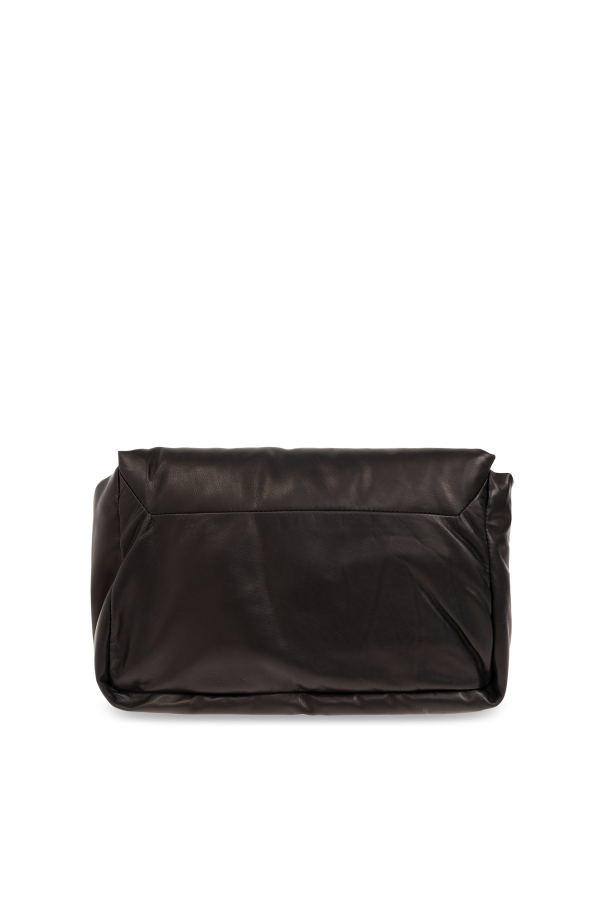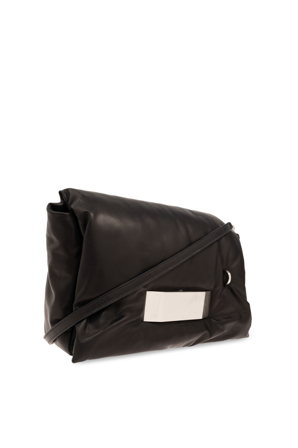Black ‘Big Pillow Griffin’ shoulder bag from Rick Owens. Made from lamb leather, this design secures with a magnetic fastener and showcases a logo application, silver-tone metal hardware as well as a detachable shoulder strap and one internal compartment with one slip pocket and one zip pocket.