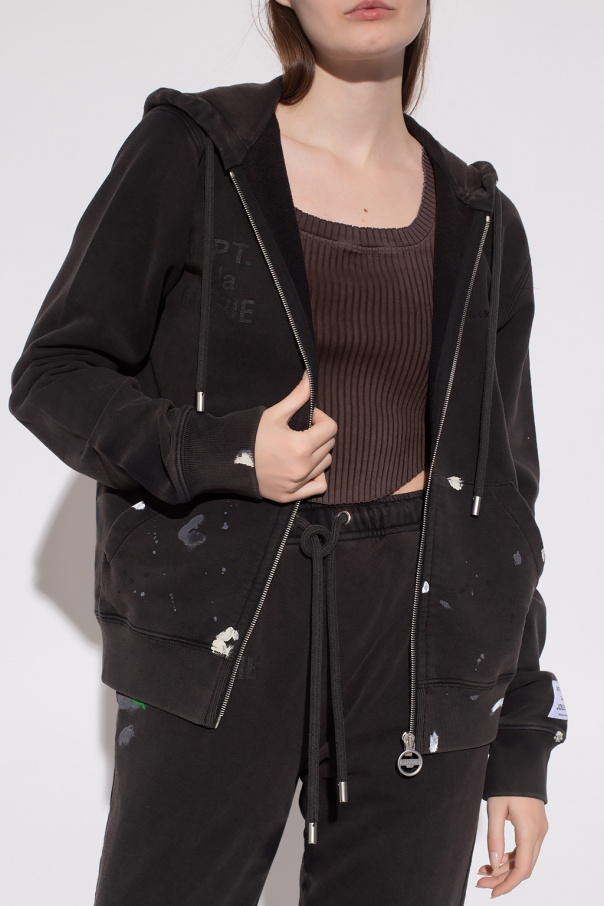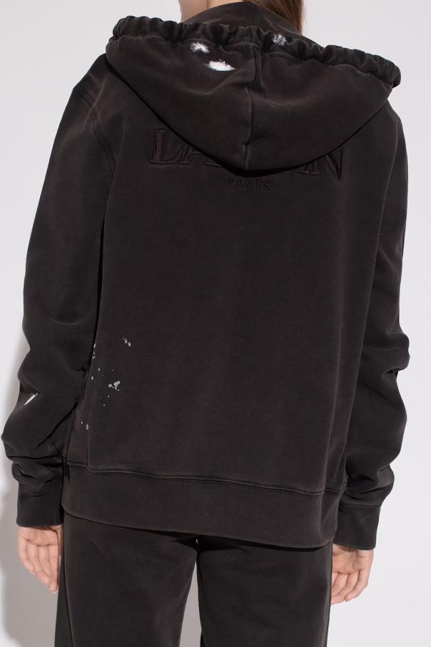 Black hoodie from Lanvin x Gallery Dept. Made of cotton, this garment features a zip fastening, logo embroidery, paint splatter effect, patch by Josué Thomas, two front pockets, drawstring hood and ribbed trims at the hem and cuffs.