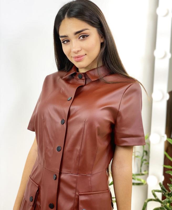 Замовляла в Інстаграм, українське виробництво, але не підійшов розмір (зашироке в талії, можливо з ременем буде гарно). Пошите дуже якісно, гарний матеріал. Треба розвісити на вішак і еко-шкіра вирізняється, бо довго було складене в пакеті.
