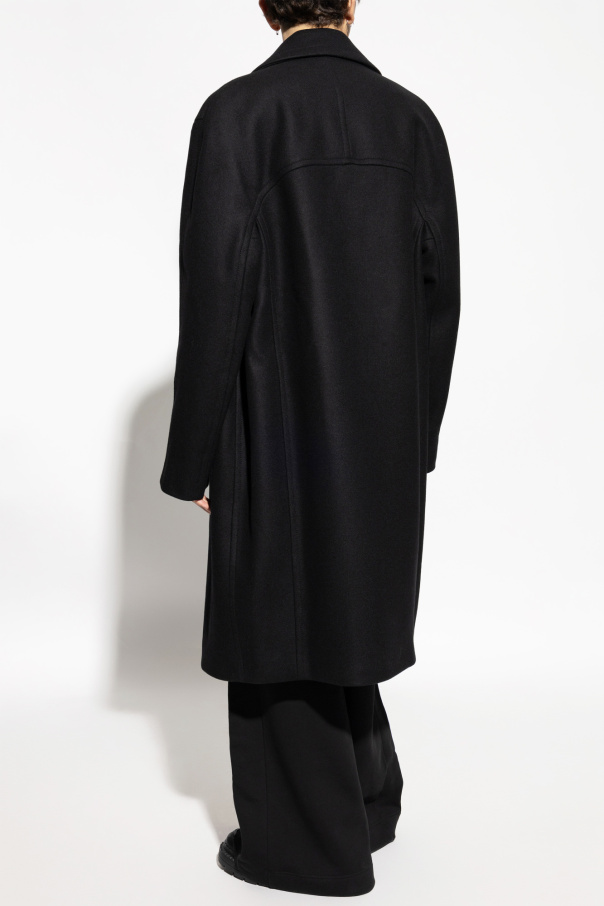 Double-Breasted Coat by Dries Van Noten Introducing the exquisite Double-Breasted Coat by the illustrious designer Dries Van Noten. This black, knee-length coat epitomizes sophistication, combining a timeless silhouette with superior craftsmanship. Meticulously crafted from a luxurious blend of wool and polyamide, the coat features a soft and warm exterior, perfect for cooler days. The interior is lined with a refined mix of cupro and cotton, ensuring unparalleled comfort and breathability. The coat's double-breasted design, accentuated by six buttons, and wide lapels exude a formal elegance. Functional elegance is further enhanced by the two rectangular, flap-closure pockets and subtle back stitching, indicative of its superior quality. Designed for the discerning gentleman, this coat is the epitome of versatility, seamlessly transitioning from formal events to everyday wear. Why You Should Buy This Product Elegant Design: The double-breasted style and wide lapels offer a timeless, sophisticated look. Premium Materials: Crafted from high-quality wool and polyamide blend for warmth, with a cupro and cotton lining for comfort. Functional Details: Features practical side pockets and sturdy six-button closure. Exclusive Designer: A creation by Dries Van Noten, a member of the famed Antwerp Six, adding a touch of avant-garde luxury to your wardrobe. Versatility: Ideal for both formal occasions and everyday use, ensuring you stay stylish and comfortable in cooler weather.