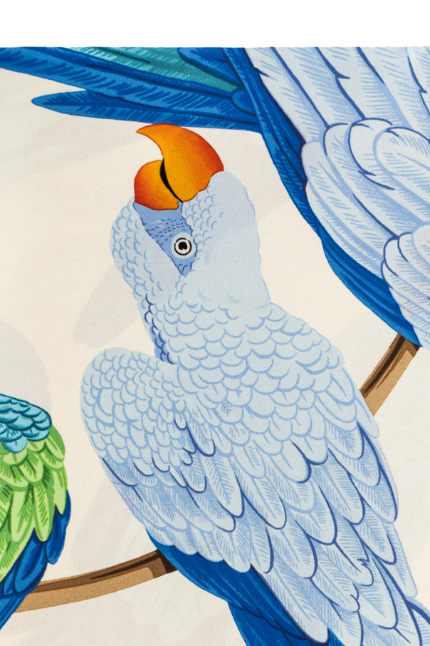 Cream shawl from FERRAGAMO. Made of silk, this item showcases a distinctive, colourful print with a logo and animals.