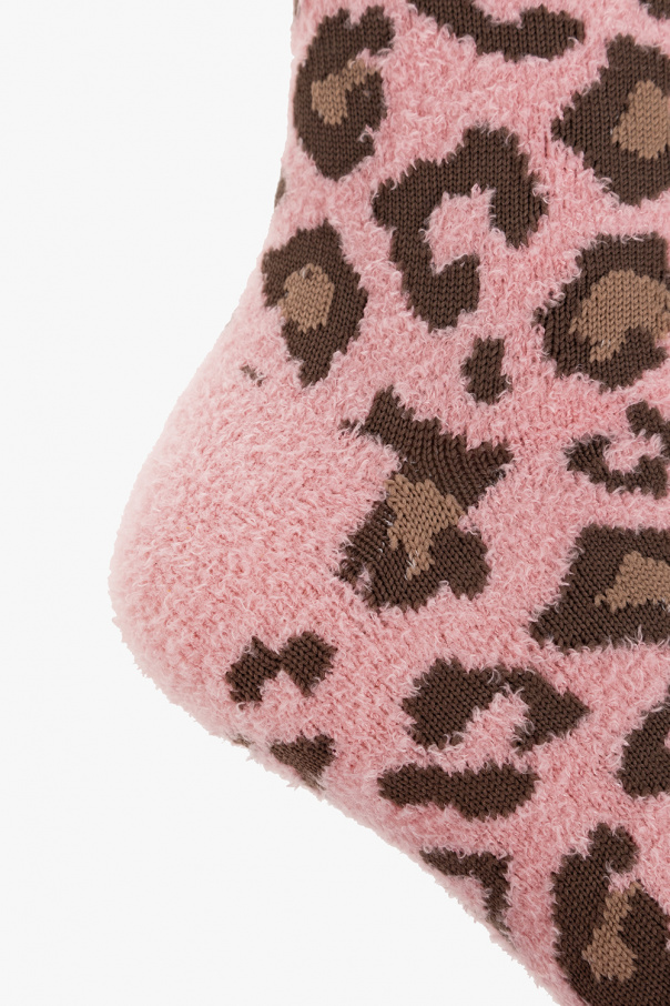 Pink socks from UGG. Crafted from textured material, this pair showcases a brown leopard print and a logo patch at the hem.