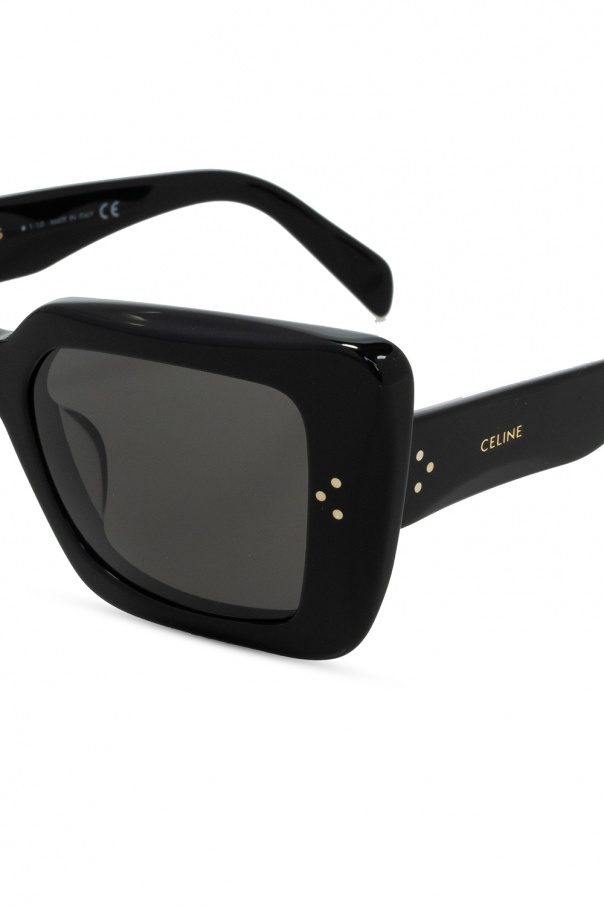 Black sunglasses from Celine. Crafted from acetate, this pair comes with gold-tone logo embossed on the temples and certified black lenses which ensure UVA/UVB protection.
