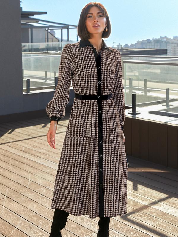 🔥Расклешенное платье в "гусиную лапку". Изделие с отложным воротником. Отрезанная по линии талии.