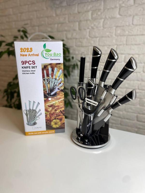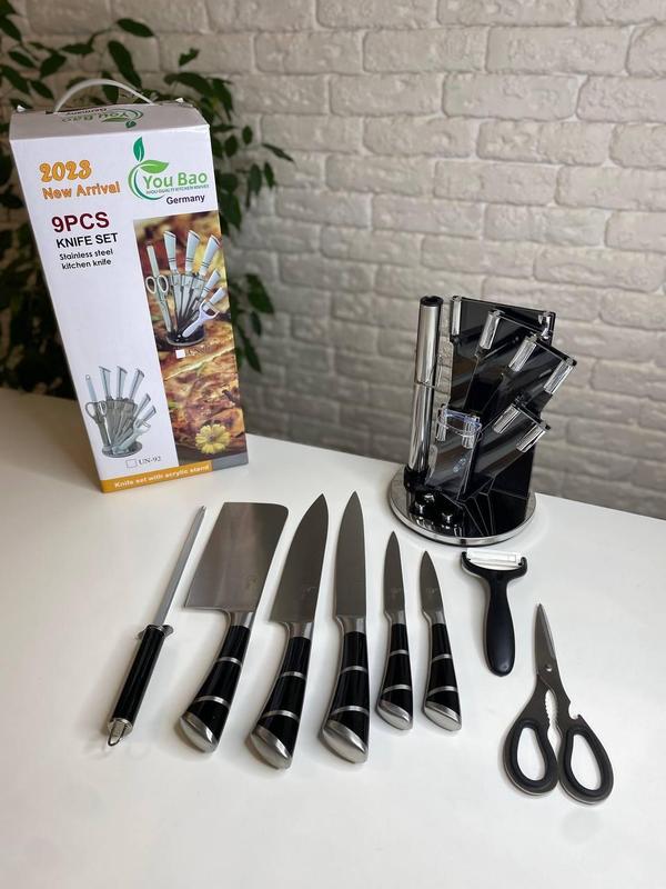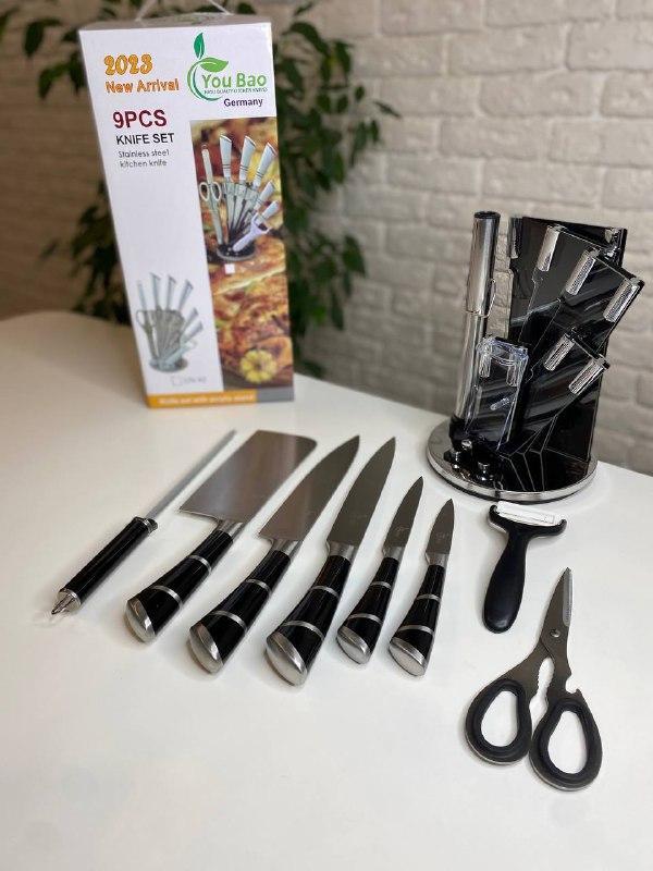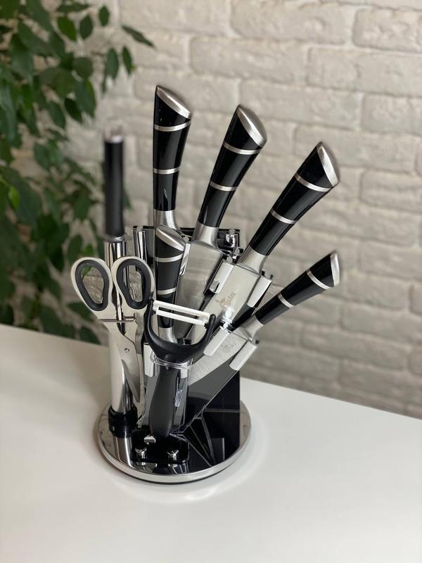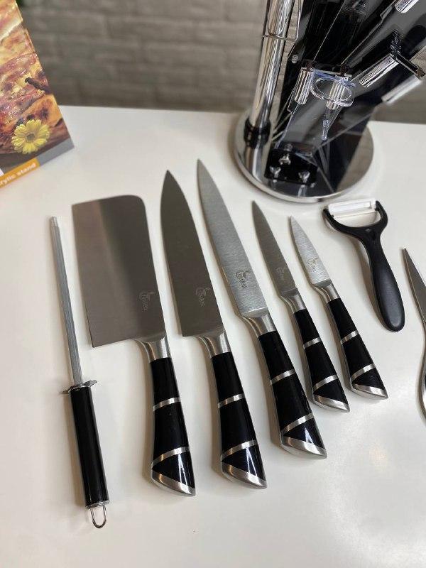 Набор кухонных ножей 9 предметов на подставке крутящейся с ножницами Сталь