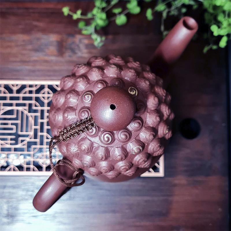 Объемное фактурное изображение Будды воплощает утонченность искусного исполнения, где каждая деталь изображения передает собственную глубину и спокойствие. Золотые буквы, покрывающие чайник, придают ему роскошный вид и отражают гармонию междужавеющим и духовым мирами. Изысканный дизайн дополняется объемными орнаментами на крышке, которые придают чайнику неповторимый шарм и делают его волшебным произведением искусства, что достойно представляет давнюю китайскую чайную традицию.