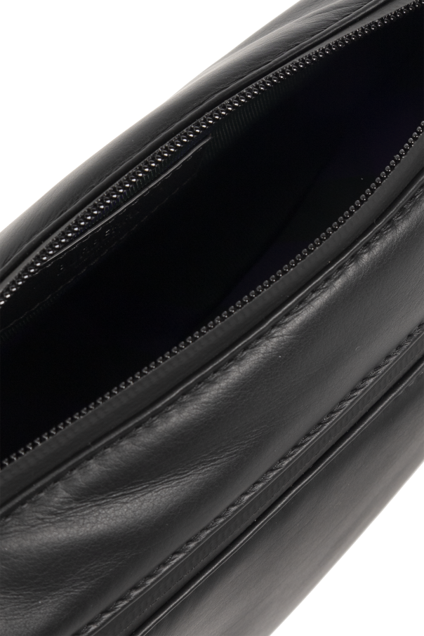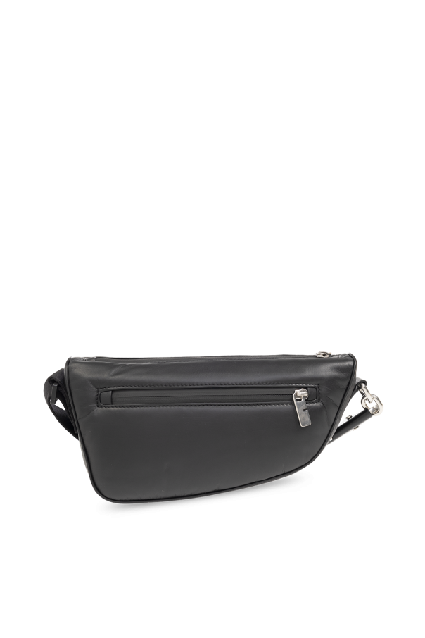 Black ‘Shield’ shoulder bag from Burberry. Made of leather, this design fastens via a zip and showcases an embossed logo. It is complete with a shoulder strap, silver-tone metal hardware and one internal compartment.