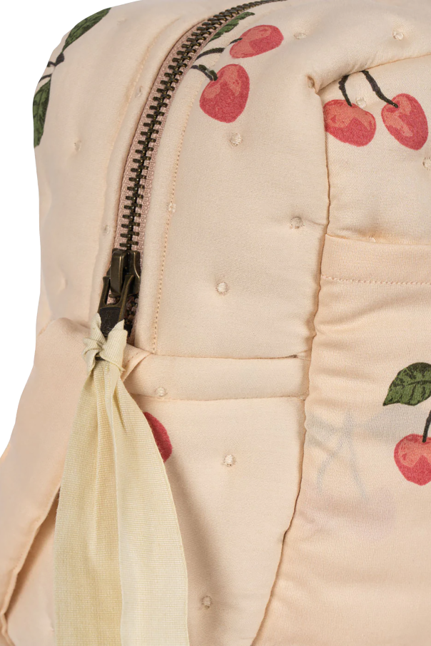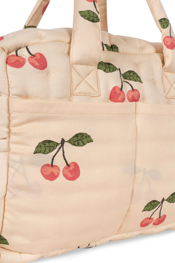 Introducing the Diaper Bag for Dolls from the illustrious brand Konges Sløjd, an epitome of elegance and playful sophistication. This enchanting beige bag is adorned with a delightful cherry motif, exuding an aura of sweet charm. Its rectangular shape with rounded edges and a quilted finish bestows a soft, inviting appearance. Crafted from the finest organic cotton and lined with recycled polyester, this bag not only promises sustainability but also ensures durability and comfort. The bag features two handles and a long, adjustable shoulder strap for versatile carrying options, while a top zipper provides effortless access to its spacious interior, perfect for storing your doll's accessories. An external large pocket adds to its functionality, making it an indispensable item for all doll parents. Certified by OEKO-TEX® STANDARD 100, this bag is a testament to safety and environmental consciousness. Why Choose This Product? Elegant Design: Exquisite cherry motif and quilted texture. Quality Materials: 100% organic cotton with recycled polyester filling. Functional: Spacious interior and additional external pocket. Versatility: Adjustable strap and handles for various carrying styles. Eco-Friendly: Certified safe and sustainable materials.