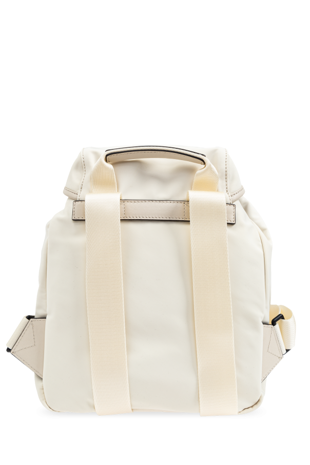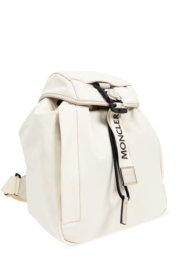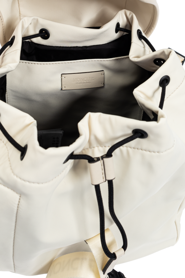 Introducing the "Trick" Backpack by Moncler, a harmonious blend of luxurious style and utilitarian function. This exquisite piece, crafted from premium waterproof nylon, exudes an air of sophisticated elegance in its creamy hue. Its cylindrical shape, tapered at the top and secured with a chic Moncler-branded buckle, epitomizes contemporary design while ensuring your belongings are kept safe and sound. The "Trick" is engineered for utmost comfort and convenience; its adjustable, broad straps ensure a perfect fit, while the top handle offers an alternate carrying option. The drawstring closure, complemented by the stopper, and the additional buckle fastening, not only add layers of security but also enhance the backpack's sleek aesthetic. Its spacious interior, equipped with a slip pocket, makes organization effortless, proving that style does not have to compromise functionality. Every detail, from the subtle shine indicating water resistance to the visible Moncler logo on the ribbon and buckle, affirms the "Trick" Backpack's status as a luxurious accessory. It's not just a backpack; it's a statement of elegance and practicality. Why purchase the "Trick" Backpack? Elegantly crafted from waterproof nylon, perfect for all weather conditions. Adjustable straps and convenient top handle for versatile carrying options. Secure closure with a drawstring, stopper, and Moncler-branded buckle for enhanced safety of your essentials. Spacious interior with a slip pocket, ideal for those who value efficient organization. A creamy hue and luxurious design elements that make it a timeless fashion statement.