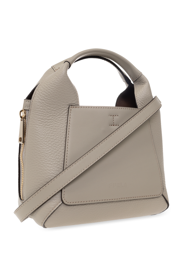 Grey ‘Gilda Mini’ shoulder bag from Furla. Made of leather, this design features a carabiner closure, embossed logo, side zips to adjust the bag’s capacity, two half-round handles, detachable and adjustable shoulder strap, gold-tone metal hardware and one internal compartment with one slip pocket.