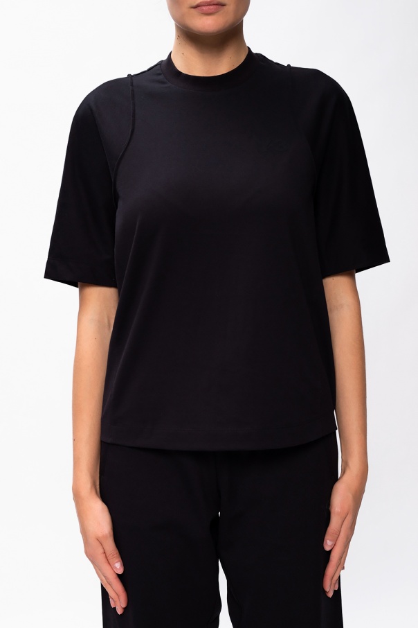 Black T-shirt from Y-3 Yohji Yamamoto. Made of cotton, this round neck design features a black logo.