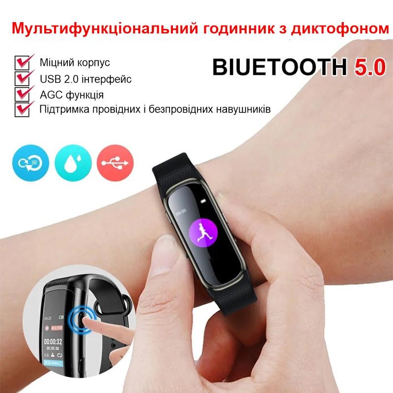 Часы с диктофоном и bluetooth с шагомером и MP3 плеером Mrobo X1, 8 Гб памяти