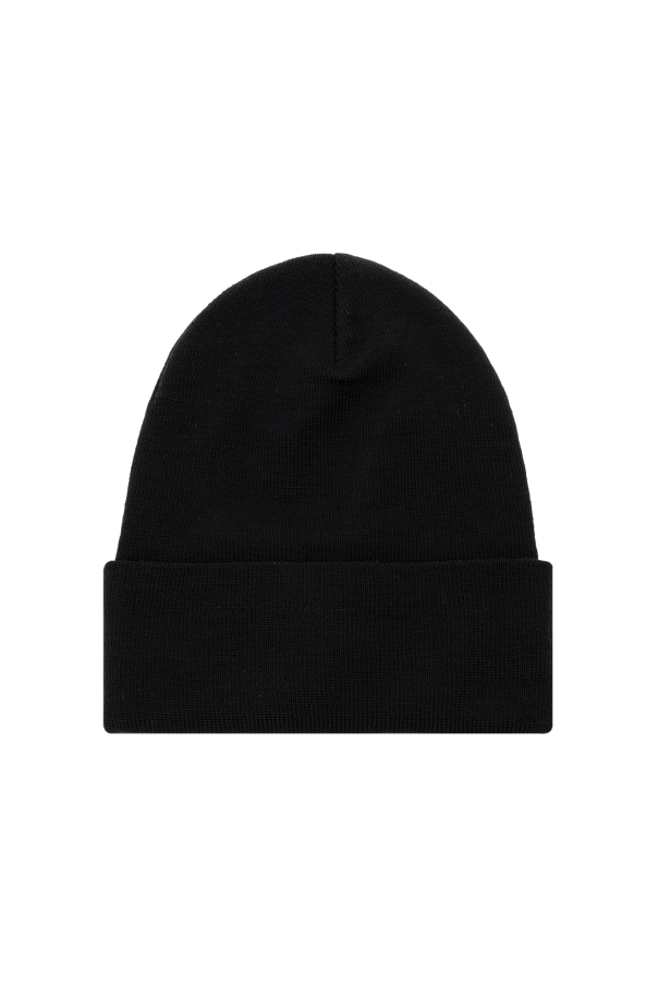 Black beanie from Moncler Grenoble, the ‘Apres-ski’ collection. Made from virgin wool, this item features a felt logo patch on the front.