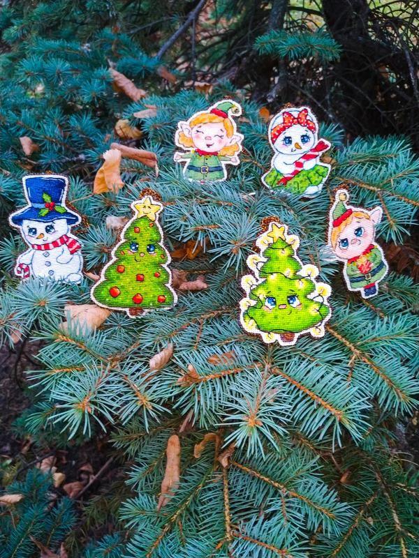 Вышиты на пластиковой канве. Тыльная часть из фетра. Края обработаны с помощью бисера. Подвеска также из бисера.