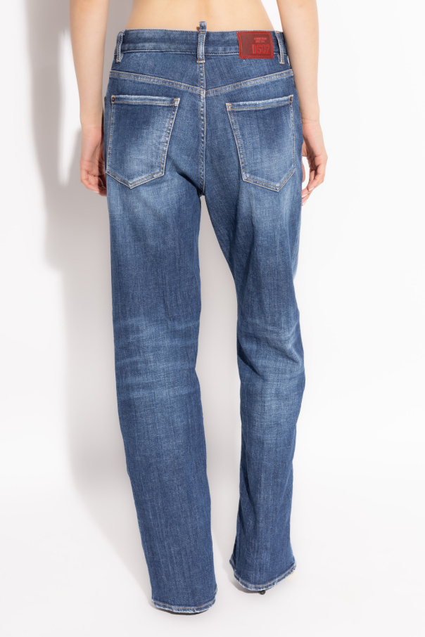 Introducing the San Diego Jeans by Dsquared2, a quintessential blend of classic design and modern flair. Crafted with an exquisite blend of cotton, polyester, and elastane, these jeans offer unparalleled comfort without sacrificing style. The timeless blue hue is accentuated by wide legs and iconic stitching, finished in a contrasting gold thread that exudes luxury. The front of the jeans features a traditional pocket layout, including two front pockets and a quaint coin pocket, all secured with a sleek zipper and button closure. Belt loops around the waist ensure a perfect fit, allowing for a personalized touch with your favorite belt. A deliberate fade down the center of the legs gives these jeans a stylishly worn look, further enhancing their appeal. The rear is adorned with two pockets, showcasing a red leather emblem embossed with "DSQ2" and "GENINE LEATHER DEBOSSED DESIGN SINCE 1995", marking the exclusivity and rich heritage of the Dsquared2 brand. This emblem not only signifies the authenticity of the design but also adds a touch of sophistication, making these jeans a must-have for those who appreciate fine craftsmanship and iconic styling. Why Purchase These Jeans? Superior blend of materials for comfort and durability. Elegant design with contrasting gold stitching. Unique faded effect for a stylish, worn look. Exclusive red leather emblem signifies brand excellence and heritage. Versatile and timeless, perfect for various occasions.