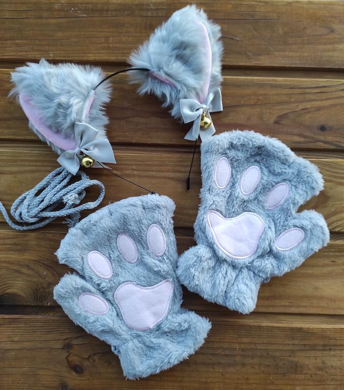 Перчатки кошачьи лапки, лапы кошки, митенки без пальцев