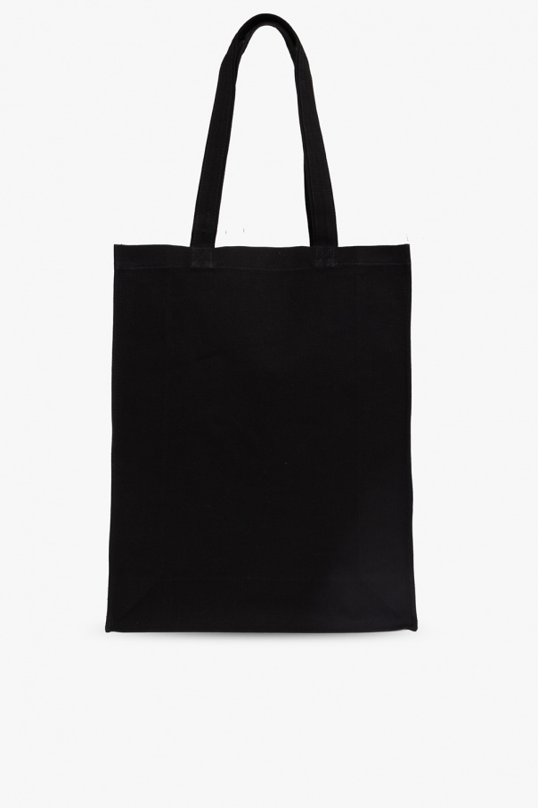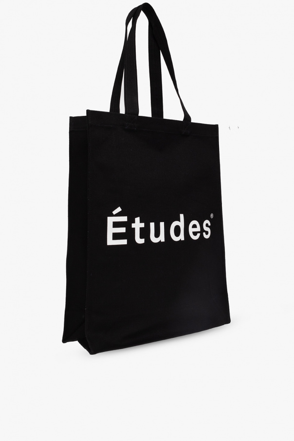 Black shopper bag from Etudes. Crafted from organic cotton, this design features a printed white logo on the front, two half-round handles and one internal compartment.